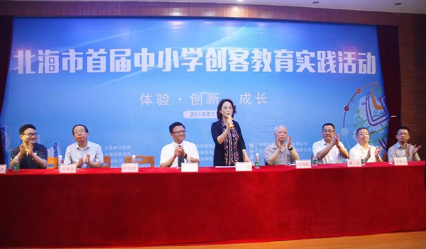 北海市科技局、北海市教育局、中國電子學會、中國電子北海產(chǎn)業(yè)園主辦的2018年北海市科技活動周暨首屆中小學創(chuàng)客教育實踐活動于5月21日開幕,北海市副市長黃江出席開幕式并宣布教育實踐活動啟動。